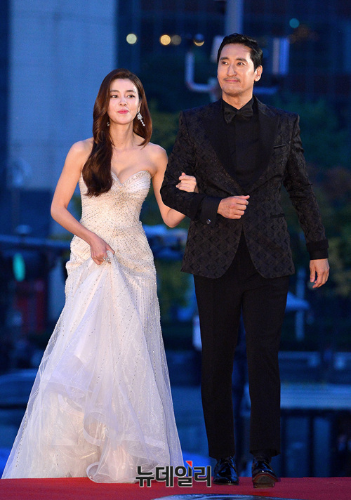 배우 김규리, 신현준이 22일 오후 서울 세종문화회관에서 열린 '제55회 대종상 영화제'에 참석해 포즈를 취하고 있다.