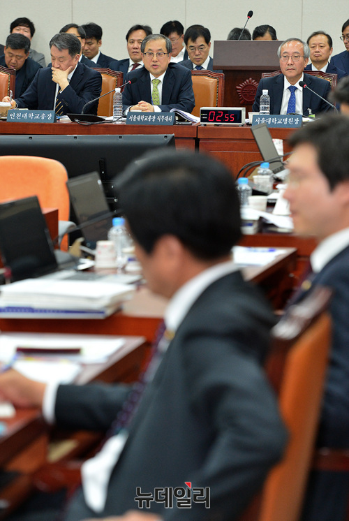 박찬욱 서울대학교 총장 직무대리가 23일 오전 국회에서 열린 교육위원회의 서울대학교, 한국방송통신대학교, 서울대학교병원 등에 대한 국정감사에 출석해 질문에 답하고 있다.
