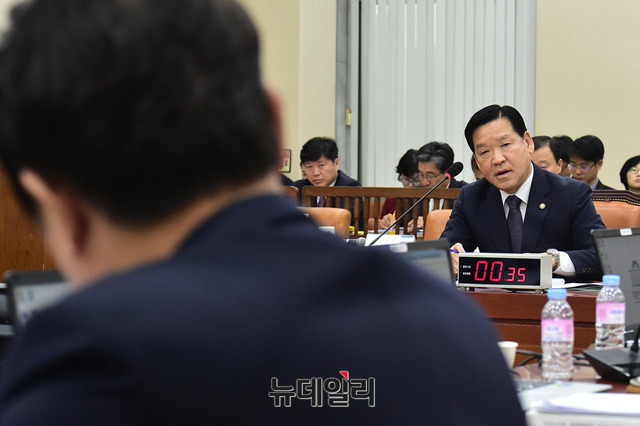 기찬수 병무청장이 23일 오전 국회에서 열린 국방위원회의 국정감사에 출석해 의원들의 질문에 답하고 있다.