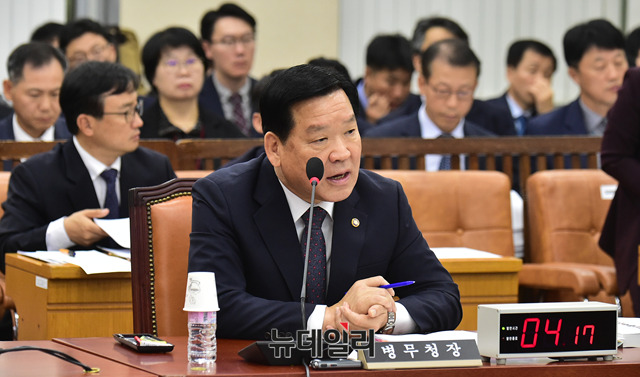 기찬수 병무청장이 23일 오전 국회에서 열린 국방위원회의 국정감사에 출석해 의원들의 질문에 답하고 있다.