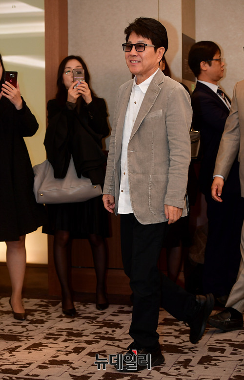 가수 조용필이 23일 오전 서울 중구 롯데호텔에서 열린 '조용필 50주년 기념메달' 공개 행사에 입장하고 있다.