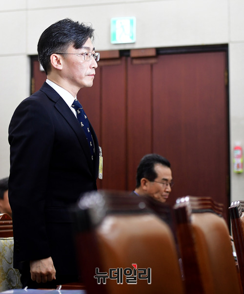 이국종 아주대병원 권역외상센터 소장이 24일 국회에서 열린 국회 보건복지위원회의 한국보건의료인국가시험원 등에 대한 국정감사에 참고인으로 출석하고 있다.