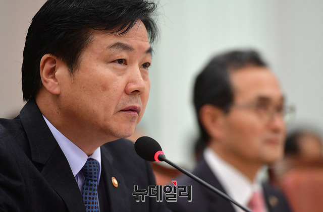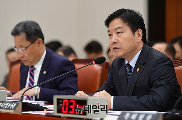 홍종학 중소벤처기업부 장관이 26일 오후 국회에서 열린 산업통상자원중소벤처기업위원회의 중소벤처기업부, 특허청에 대한 국정감사에서 질의에 답하고 있다.