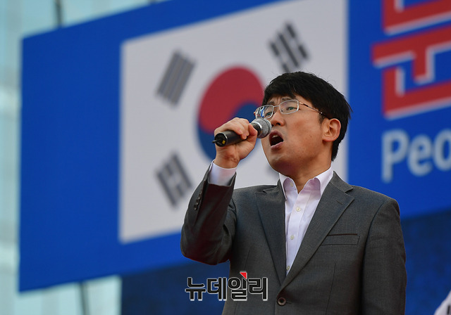 [포토] 문재인정권퇴진 국민총궐기, 발언하는 도태우