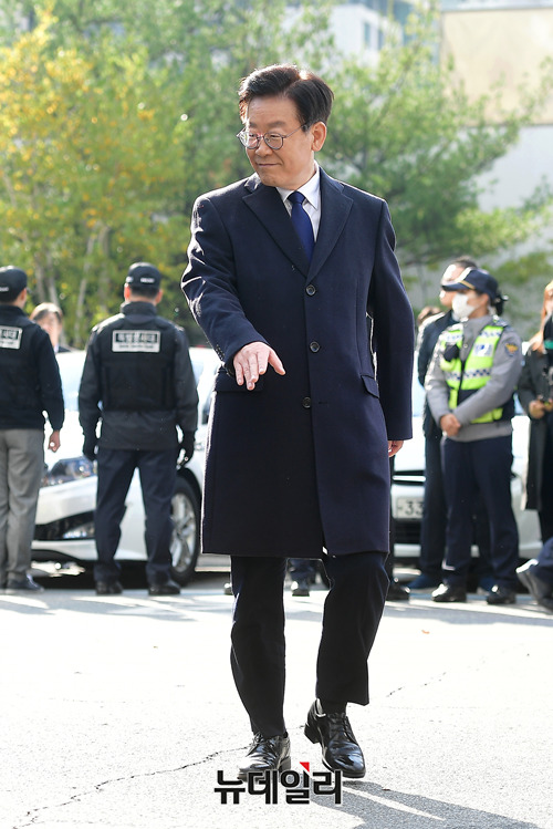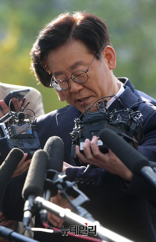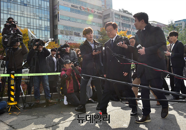 이재명 경기지사가 29일 오전 경기 성남시 분당경찰서에 친형 강제 입원 의혹과 여배우 스캔들 의혹에 관련해 피고발인 신분으로 조사 받기 위해 출석하고 있다.