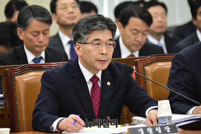 민갑룡 경찰청장이 29일 오전 국회에서 열린 행정안전위원회 종합감사에 출석해 의원들의 질문에 답하고 있다.