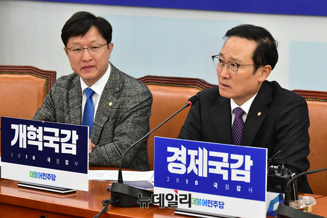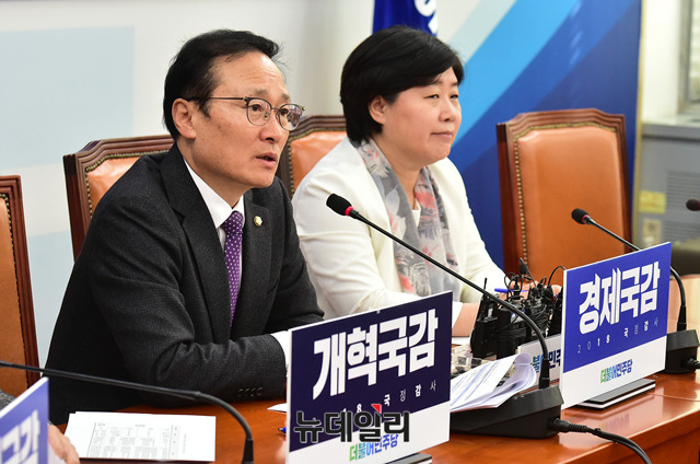 [포토] 기자간담회 갖는 홍영표 민주당 원내대표