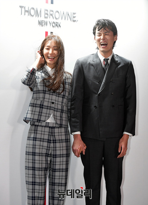 모델 김은중, 곽지영 부부가 30일 오후 서울 강남구 10꼬르소꼬모 서울에서 열린 '톰브라운 골프 캡슐 컬렉션' 런칭행사에 참석해 포토타임을 갖고 있다. '톰브라운 골프 캡슐 컬렉션'은 테니스 컬렉션을 잇는 스포츠 테마의 시리즈. 팝업스토어 전시는 오프닝 이벤트를 시작으로 10월 31일부터 11월 4일까지 운영 된다.