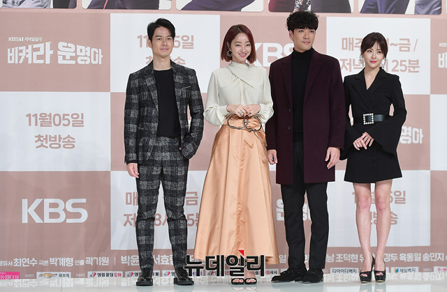 배우 강태성, 서효림, 박윤재, 진예솔(왼쪽부터)이 31일 오후 서울 영등포구 타임스퀘어 아모리스홀에서 열린 KBS 저녁 일일극 '비켜라 운명아(연출 곽기원, 극본 박계형)' 제작보고회에서 포토타임을 갖고 있다.
