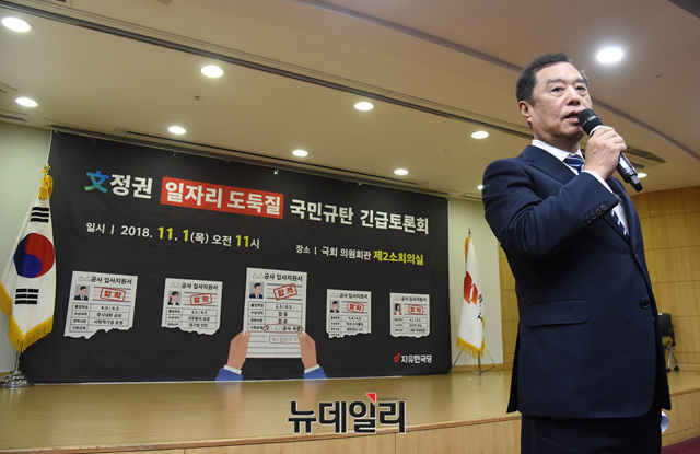 김병준 자유한국당 비상대책위원장이 1일 오전 국회 의원회관에서 열린 '공공기관 고용세습 관련 긴급토론회'에 참석해 발언하고 있다.