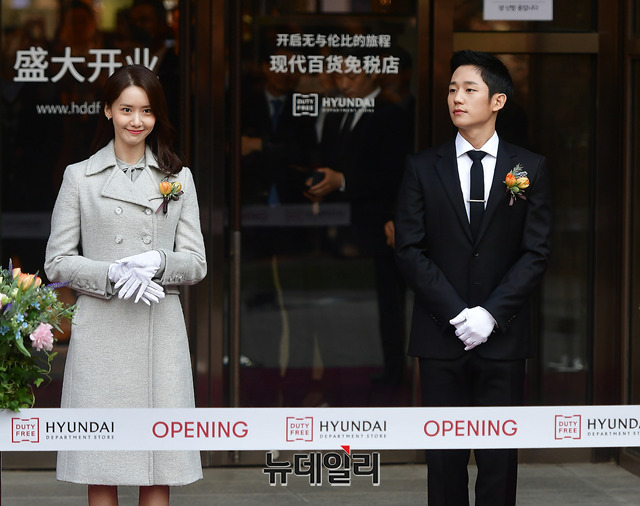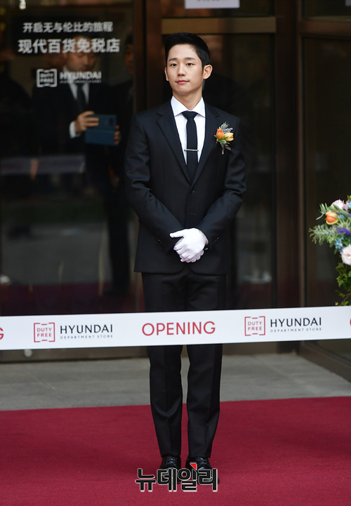 배우 정해인이 1일 오전 서울 강남구 현대백화점 무역센터점에서 열린 현대백화점면세점 무역센터점 오픈 기념행사에 참석해 자리하고 있다. 배우 정해인과 가수 윤아는 면세점 홍보모델로 활동 중이다.이날 기념행사에는 정지선 현대백화점그룹 회장을 비롯해 이동호 부회장, 정교선 부회장, 윤신 한국도심공항 사장, 한진현 한국무역협회 부회장, 정순균 강남구청장, 윤이근 서울세관장, 홍보모델 윤아, 정해연, 권봉주 파르나스몰 사장, 황해연 대표 등이 참석했다.