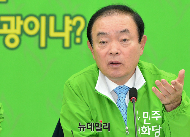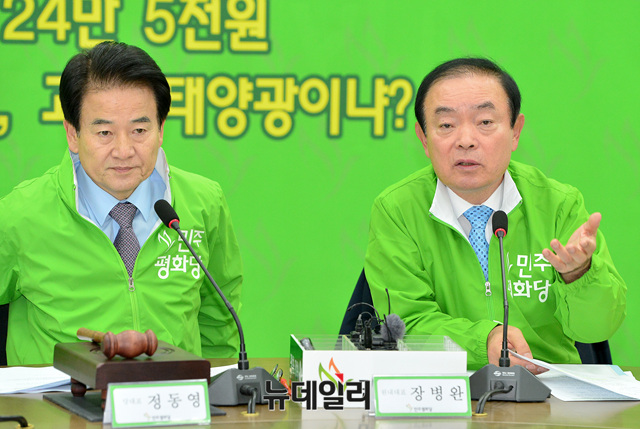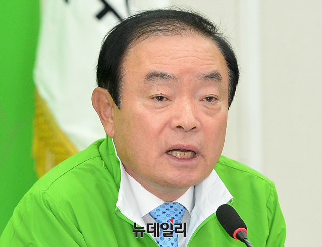 장병완 민주평화당 원내대표가 2일 오전 국회에서 열린 최고위원·국회의원·상임고문 연석회의에 참석해 모두발언 하고 있다.