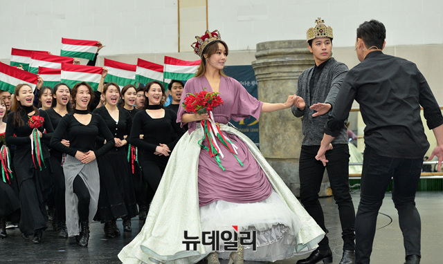 배우 옥주현이 2일 오후 서울 중구 남산창작센터 연습실에서 열린 뮤지컬 '엘리자벳(Elisabeth)' 연습실 현장공개에 참석해 연기를 선보이고 있다.
