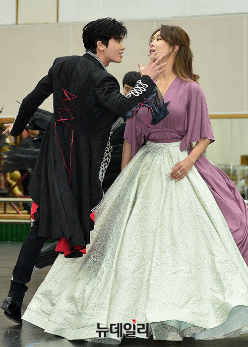 배우 옥주현과 박형식이 2일 오후 서울 중구 남산창작센터 연습실에서 열린 뮤지컬 '엘리자벳(Elisabeth)' 연습실 현장공개에 참석해 연기를 선보이고 있다.
