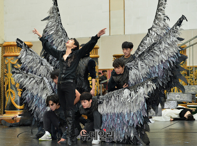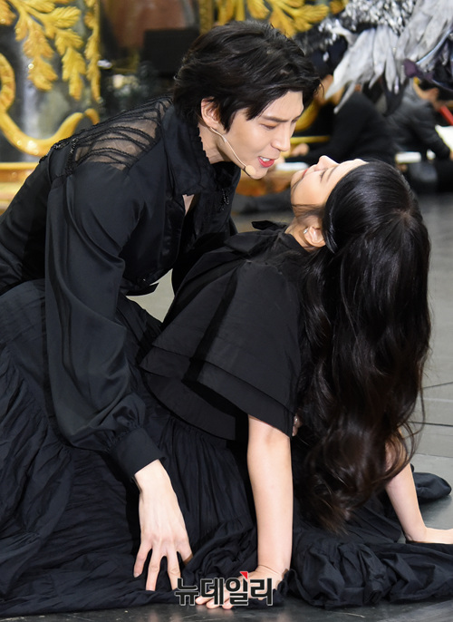 배우 레오와 김소현이 2일 오후 서울 중구 남산창작센터 연습실에서 열린 뮤지컬 '엘리자벳(Elisabeth)' 연습실 현장공개에 참석해 연기를 선보이고 있다.