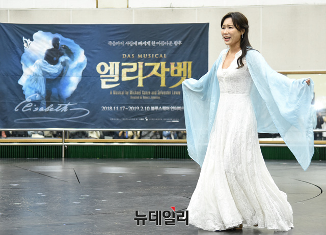 배우 신영숙이 2일 오후 서울 중구 남산창작센터 연습실에서 열린 뮤지컬 '엘리자벳(Elisabeth)' 연습실 현장공개에 참석해 연기를 선보이고 있다.