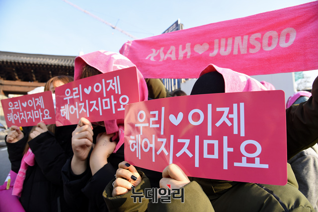 [포토] 김준수 기다리는 팬들 "우리 헤어지지마요"