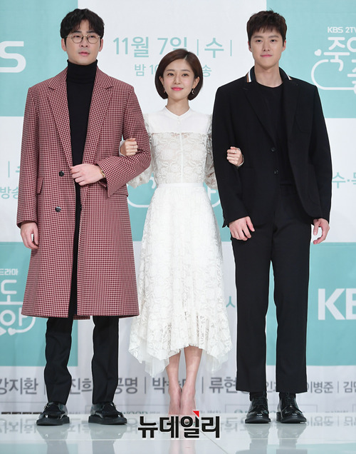 배우 강지환, 백진희, 공명이 5일 오후 서울 영등포구 타임스퀘어 아모리스홀에서 열린 KBS 2TV 수목드라마 '죽어도 좋아(극본 임서라, 연출 이은진 최윤석)' 제작보고회에서 포토타임을 갖고 있다.