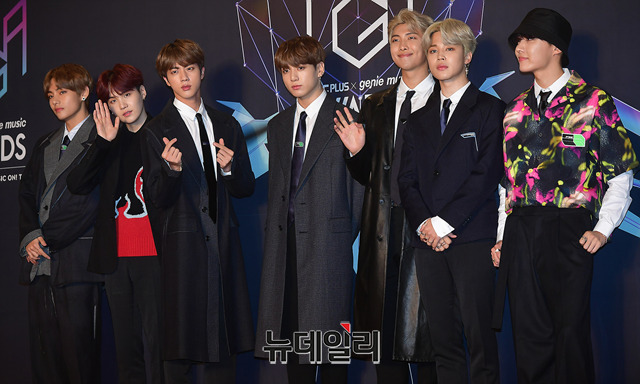 방탄소년단이 6일 오후 인천 남동구 남동체육관에서 열린 '2018MGA(MBC플러스X지니뮤직 어워드)' 시상식에 앞서 열린 레드카펫 행사에 입장하고 있다. 시상식은 오후 7시부터 인천 남동체육관에서 진행된다. 생방송은 MBC Music, MBC every1, MBC Drama 채널을 통해 중계된다. (인천=뉴데일리 정상윤 기자)