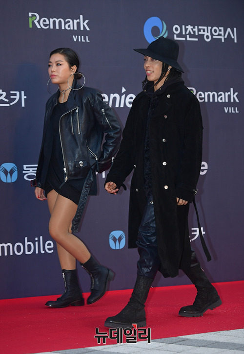 댄서 제이블랙과 마리 부부가 6일 오후 인천 남동구 남동체육관에서 열린 '2018MGA(MBC플러스X지니뮤직 어워드)' 시상식에 앞서 열린 레드카펫 행사에 입장하고 있다. 시상식은 오후 7시부터 인천 남동체육관에서 진행된다. 생방송은 MBC Music, MBC every1, MBC Drama 채널을 통해 중계된다. (인천=뉴데일리 정상윤 기자)