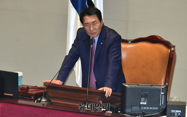 안상수 국회 예산결산특별위원회 위원장이 7일 오전 국회에서 열린 예산결산위원회 전체회의를 주재하고 있다.