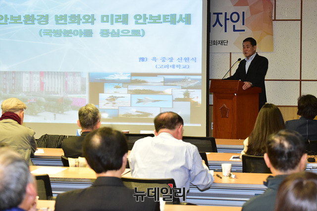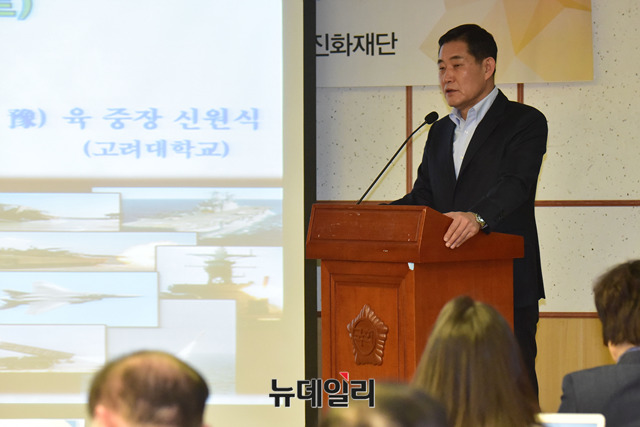 신원식 전 합동참모본부 작전본부장이 8일 오전 국회 의원회관에서 한반도선진화재단 주최로 열린 강연에서 '자강중심의 평화정책을 위한 안보 대북정책 패러다임의 혁신'이란 주제로 강연을 하고 있다.