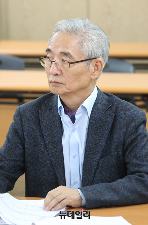 자유한국당이 전원책 조강특위 위원을 해촉한 9일 오후 서울 여의도 서울시당사에서 열린 조강특위회의에 이진곤 위원이 참석해 앉아 있다.