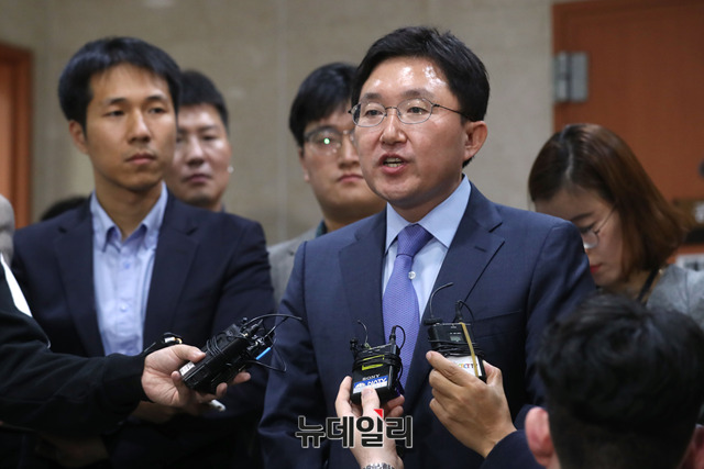 [포토] 기자들의 질문에 답하는 김용태 한국당 사무총장