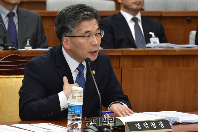 민갑룡 경찰청장이 9일 오후 국회에서 열린 사법개혁특별위원회 전체회의에서 의원들의 질문에 답하고 있다.