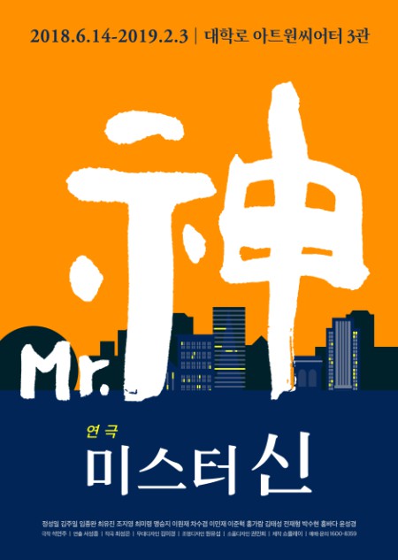 연극 '미스터 신'이 뉴 캐스트와 함께 연장 공연에 돌입한다.'미스터신'은 특출날것 없이 평범한 삶을 살고 있는 여자 인간 '최하나'와 옥황상제의 명으로 '닭띠 이수현'을 찾기 위해 하늘에서 내려온 남자 '삼신'이 거래를 통해 함께 '닭띠 이수현'을 찾아가는 과정을 유쾌하게 그린다.6월 14일 개막 이래 5개월 간 공연되며 소극장 특유의 생생한 현장감과 입체적인 캐릭터 표현으로 관객들의 호평을 받았다. 특히 다양한 이수현들과의 만남을 통해 인간의 삶과 사랑에 대해 공감을 이끌어냈다.이번 연장 공연에는 연극 '드립걸즈', '운빨로맨스' 등에 출연하며 안정된 연기력을 선보인 개그우먼 맹승지가 새롭게 캐스팅됐다. 맹승지는 사랑을 꿈꾸지만 자존감이 바닥인 모태솔로 여성 '최하나' 역을 맡았다.초연에서 '삼신' 역을 연기했던 정성일·김주일과 '멀티남' 역의 김태성, 멀티녀 역의 박수현이 연장 공연에서도 열연을 이어간다. 또 '삼신' 역에 임종완, '최하나' 역 최미령, '남과장' 역 이민재·이준혁, '멀티남' 전재형, '멀티녀' 역에 윤성경이 합류했다.연극 '미스터 신' 연장 공연을 맞이해 오는 15일부터 30일까지 뉴 캐스트 프리뷰 기간 동안 전석 만원에 티켓을 판매한다. 23일, 29일, 30일에는 배우들의 폴라로이드 사진을 증정하는 이벤트를 진행할 예정이다.공연은 2019년 2월 3일까지 대학로 아트원씨어터 3관에서 만날 수 있다.