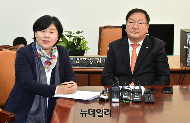 [포토] 3당 실무 TF 취소 이유 설명하는 김태년-서영교