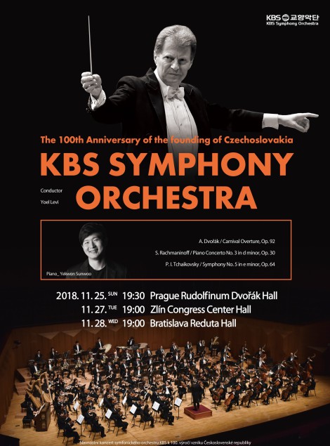 KBS교향악단이 올해 건국 100주년을 맞은 체코와 슬로바키아의 초청을 받아 유럽 투어를 떠난다.KBS교향악단은 11월 24~30일 7일 동안 체코 프라하를 시작으로 즐린, 슬로바키아의 브라티슬라바 3개 도시에서 순회공연을 갖는다.이는 2016년 오스트리아 린츠에서 열린 브루크너 페스티벌 개막공연에 초청된데 이어 2년만이다.첫 일정은 오는 25일 프라하에서 열리는 '루돌프 프리쿠스니 피아노 페스티벌(Rudolf Firkutšný Piano Festival)'이다. 체코의 대표적인 피아니스트 루돌프 프리쿠스니를 기념하는 축제로 국내 단체로는 KBS교향악단이 최초로 초청됐다.이어 27일에는 체코 즐린 시에 소재하고 있는 마르티누 체코 필하모닉 오케스트라 초청으로 즐린 콘그레스 센터에서 연주회가 열린다. 28일에는 슬로바키아 문화부 소속인 슬로바키아 국립 필하모닉 오케스트라의 초청으로 브라티슬라바 레두타홀 무대에 오른다.이번 유럽투어에서는 KBS교향악단 음악감독 요엘 레비와 2017년 반 클라이번 콩쿠르에서 한국인 최초로 우승한 피아니스트 선우예권이 함께 '드보르자크 카니발 서곡', '라흐마니노프 피아노 협주곡 3번', '차이콥스키 교향곡 5번'을 들려준다.KBS교향악단은 유럽투어에 앞서 오는 21일 오후 8시 예술의전당에서 '2018 KBS교향악단 유럽투어 프리뷰 콘서트' 겸 'KBS교향악단 제736회 정기연주회'를 개최한다.