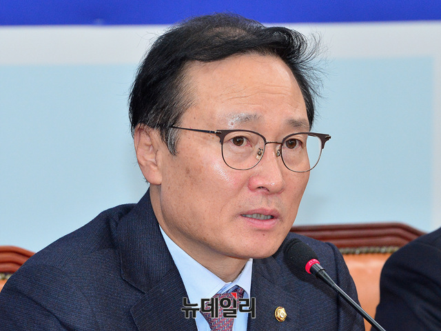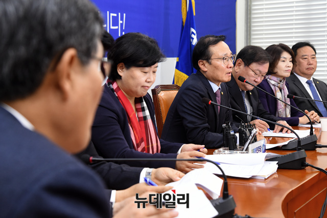 홍영표 더불어민주당 원내대표가 13일 오전 국회에서 열린 원내대책회의에 참석해 모두발언 하고 있다.