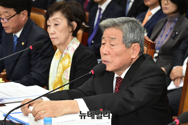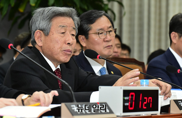 유인태 국회 사무총장이 13일 오전 국회 운영위원회에서 열린 예산안 심사를 위한 전체회의에서 의원들의 질문에 답하고 있다.