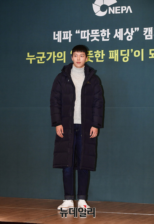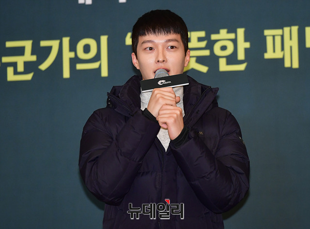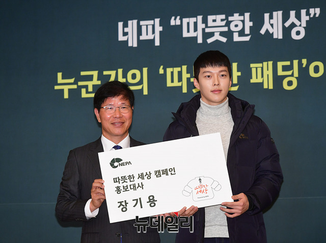 배우 장기용이 13일 오전 서울 중구 웨스틴 조선호텔에서 열린 아웃도어 브랜드 네파 2018 따뜻한 세상 캠페인 '따뜻한 패딩' 전달식에서 포토타임을 갖고 있다. 장기용은 캠페인 홍보대사로 임명됐다.
