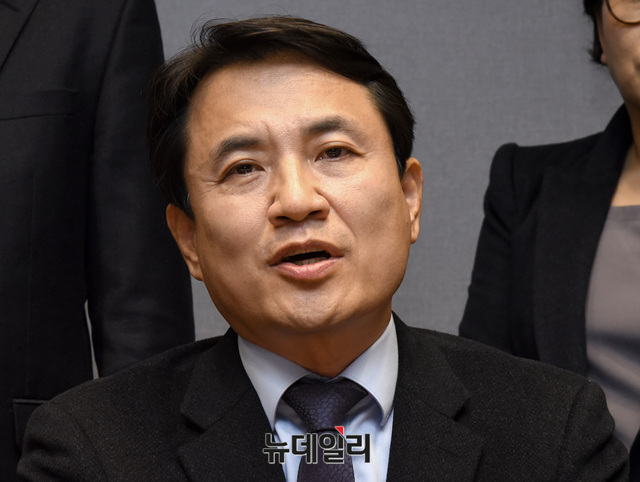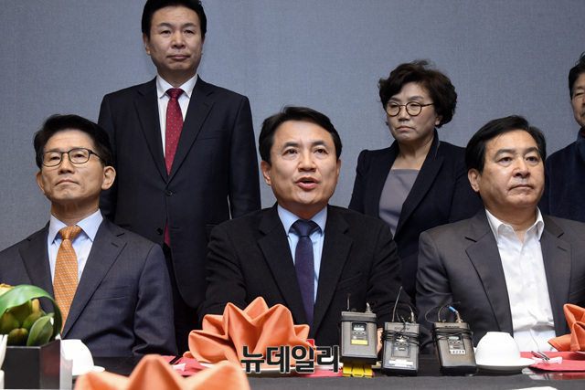 김진태 자유한국당 의원이 13일 오전 서울 영등포구 켄싱턴호텔에서 열린 자유한국당 우파재건회의 모임에 참석해 발언하고 있다.