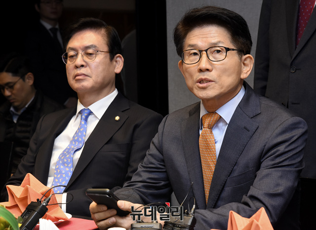 김문수 전 경기지사가 13일 오전 서울 영등포구 켄싱턴호텔에서 열린 자유한국당 우파재건회의 모임에 참석해 발언하고 있다.