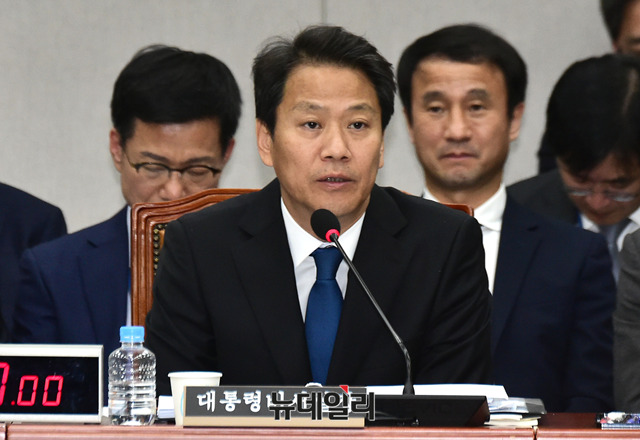 임종석 대통령 비서실장이 13일 오후 국회 운영위원회에서 열린 예산안 심사를 위한 전체회의에 참석해 의원들의 질문에 답하고 있다.