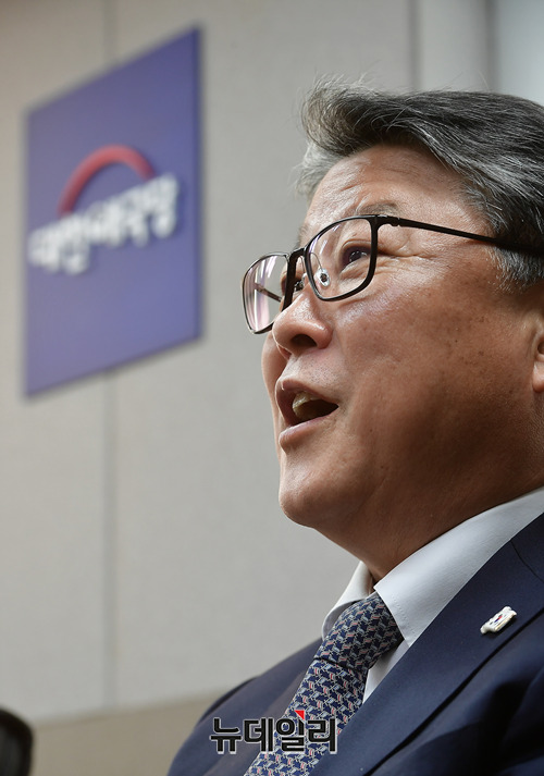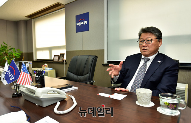 조원진 대한애국당 대표가 지난 9일 오후 서울 여의도 당사에서 박근혜 전 대통령 탄핵의 평가와 우파대통합에 대한 인터뷰를 갖고 있다. 조 대표는 "문재인 정부의 촛불 쿠데타를 통한 권력 찬탈"이었으며, 우파대통합은 "탄핵 세력이 있는 한 같이 할 수 없다"고 밝혔다.