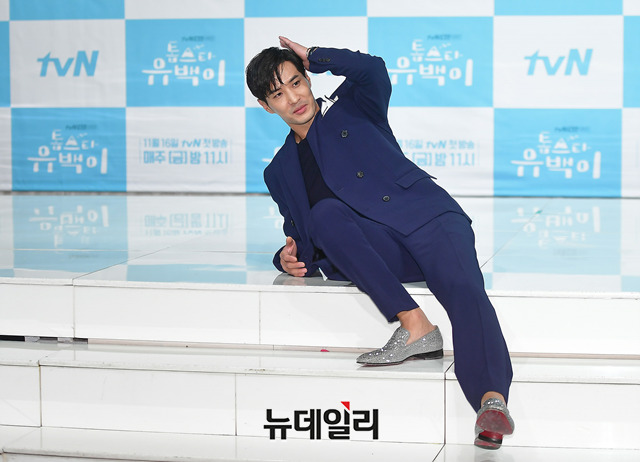 배우 김지석이 14일 오후 서울 영등포구 타임스퀘어 아모리스홀에서 열린 tvN 드라마 '톱스타 유백이(연출 유학찬, 극본 이소정 이시은)' 제작보고회에서 포토타임을 갖고 있다. 김지석은 대한민국 대표 톱스타 유백 역을 맡았다.