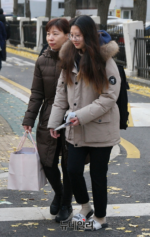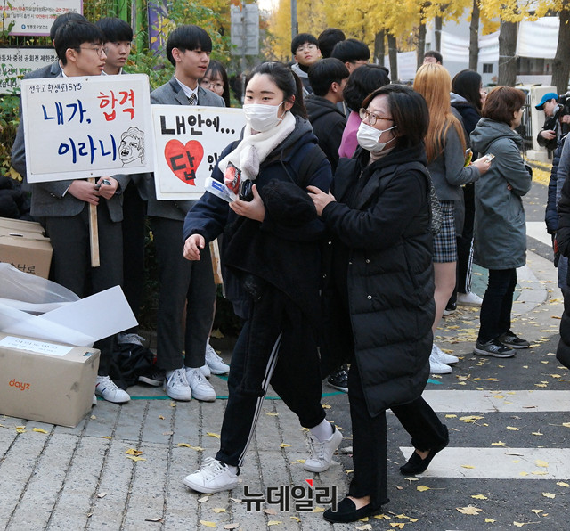 2019학년도 대학수학능력시험일인 15일 오전 서울 영등포구 여의도여자고등학교에서 수험생들이 시험장으로 입장하고 있다. 올해 수능은 지난해 보다 1,397명이 증가한 59만4,924명이 응시해 전국 86개 시험지구 1,190개 시험장에서 치러진다.