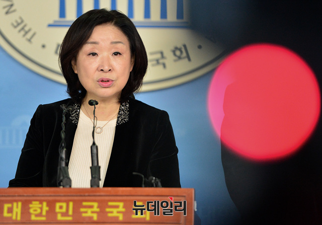 심상미 정의당 의원이 15일 오전 국회 정론관에서 기자회견을 갖고 발언하고 있다.