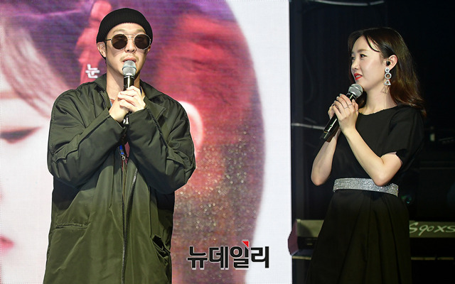 가수 별과 하하 부부가 16일 오후 서울 마포구 웨스트브릿지 라이브홀에서 열린 싱글앨범 '눈물이 나서' 발매 기념 간담회에서 포토타임을 갖고 있다. '눈물이 나서'는 이별이라는 주제를 별의 감성과 이야기로 풀어낸 곡이다. 음원은 16일 오후 6시에 공개 됐다.