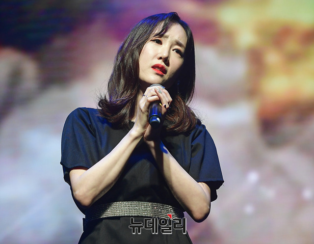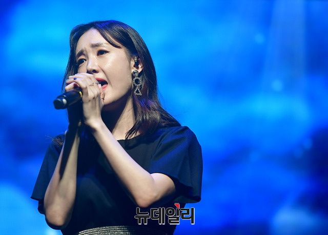 가수 별이 16일 오후 서울 마포구 웨스트브릿지 라이브홀에서 열린 싱글앨범 '눈물이 나서' 발매 기념 간담회에서 무대를 선보이고 있다. '눈물이 나서'는 이별이라는 주제를 별의 감성과 이야기로 풀어낸 곡이다. 음원은 16일 오후 6시에 공개 됐다.