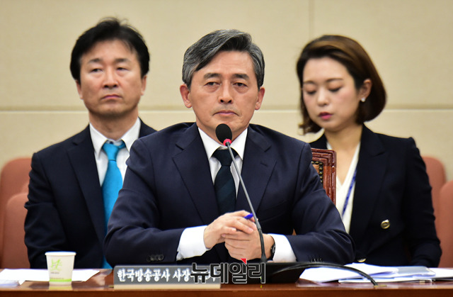 양승동 KBS 사장 후보자가 19일 오전 국회 과학기술정보방송통신위원회 전체회의실에서 열린 인사청문회에 출석해 얼굴을 만지고 있다.