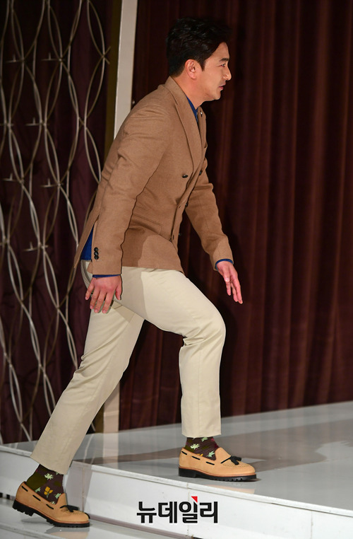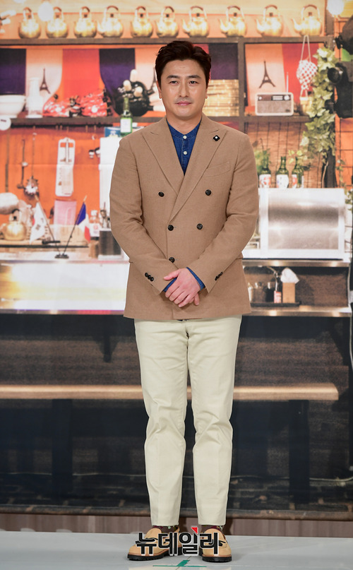 방송인 안정환이 19일 오후 서울 영등포구 타임스퀘어 아모리스홀에서 열린 올리브 예능 프로그램 '국경없는 포차' 제작보고회에서 포토타임을 갖고 있다.