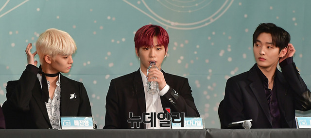 아이돌그룹 워너원(WANNA·ONE) 멤버 강다니엘이 19일 오후 서울 여의도 콘래드호텔에서 첫 번째 정규앨범 '1¹¹=1(POWER OF DESTINY)' 발매 기념 기자간담회에 앞서 물을 마시고 있다.첫 번째 정규앨범 '1¹¹=1(POWER OF DESTINY)'은 그 동안 연산 시리즈를 선보였던 원너원이 하나로써 함께 하는 의지를 '1¹¹=1'라는 수식으로 형상화했다.타이틀곡 '봄바람'은 데뷔곡 에너제틱의 작곡가 Flow Blow와 iHwak이 프로듀싱을 맡아 완성시킨 얼터너티브 댄스 장르 곡이다. 음원은 19일 오후 6시에 공개된다.
