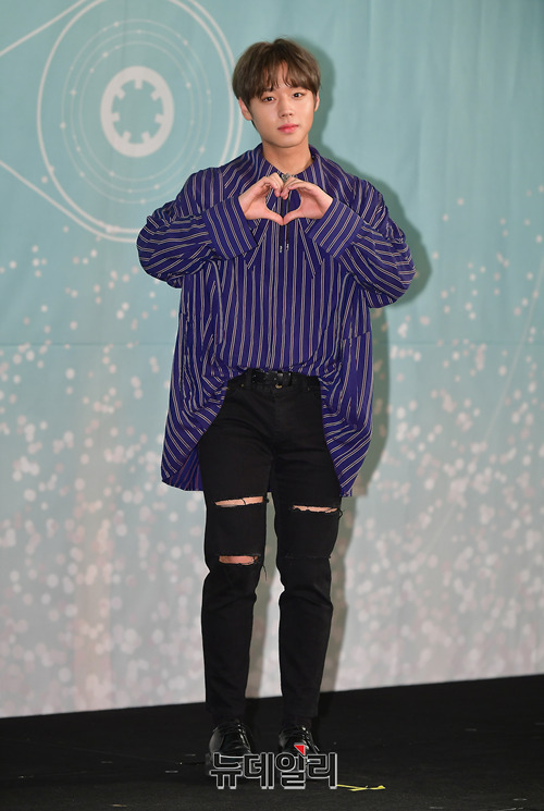아이돌그룹 워너원(WANNA·ONE) 멤버 박지훈이 19일 오후 서울 여의도 콘래드호텔에서 첫 번째 정규앨범 '1¹¹=1(POWER OF DESTINY)' 발매 기념 기자간담회에서 포토타임을 갖고 있다.첫 번째 정규앨범 '1¹¹=1(POWER OF DESTINY)'은 그 동안 연산 시리즈를 선보였던 원너원이 하나로써 함께 하는 의지를 '1¹¹=1'라는 수식으로 형상화했다.타이틀곡 '봄바람'은 데뷔곡 에너제틱의 작곡가 Flow Blow와 iHwak이 프로듀싱을 맡아 완성시킨 얼터너티브 댄스 장르 곡이다. 음원은 19일 오후 6시에 공개된다.