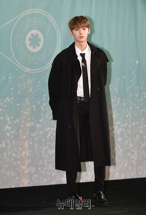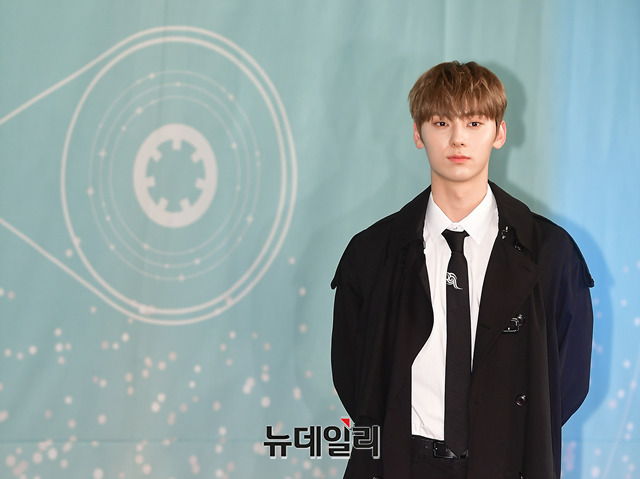 아이돌그룹 워너원(WANNA·ONE) 멤버 황민현이 19일 오후 서울 여의도 콘래드호텔에서 첫 번째 정규앨범 '1¹¹=1(POWER OF DESTINY)' 발매 기념 기자간담회에서 포토타임을 갖고 있다.첫 번째 정규앨범 '1¹¹=1(POWER OF DESTINY)'은 그 동안 연산 시리즈를 선보였던 원너원이 하나로써 함께 하는 의지를 '1¹¹=1'라는 수식으로 형상화했다.타이틀곡 '봄바람'은 데뷔곡 에너제틱의 작곡가 Flow Blow와 iHwak이 프로듀싱을 맡아 완성시킨 얼터너티브 댄스 장르 곡이다. 음원은 19일 오후 6시에 공개됐다.
