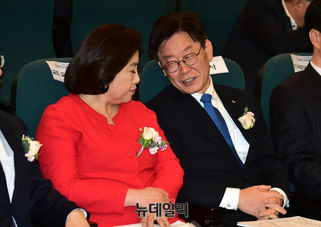 [포토] 대화 나누는 이재명-박순자